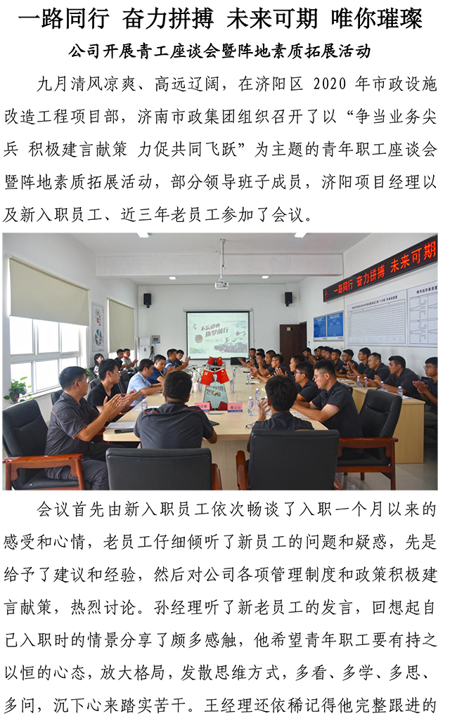 一路同行 奮力拼搏 未來(lái)可期 唯你璀璨——公司開(kāi)展青工座談會(huì )暨陣地素質(zhì)拓展活動(dòng)