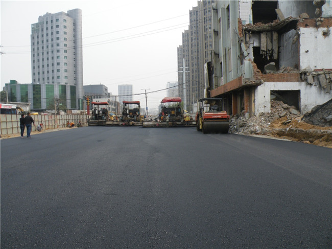 緯十二路西側快車(chē)道瀝青攤鋪施工