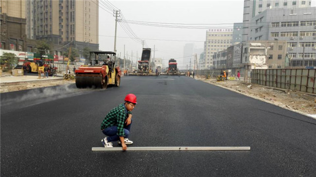 10月18日上午,緯十二路道路改造工程第二標段進(jìn)行經(jīng)一至經(jīng)六段西側快車(chē)道瀝青攤鋪施工。此次主要施工瀝青底面層和中面層,攤鋪面積約12375㎡,計劃分兩天攤鋪完成。瀝青碾壓及時(shí),項目部質(zhì)檢人員及時(shí)對平整度進(jìn)行檢測,保證瀝青攤鋪碾壓成型質(zhì)量。
