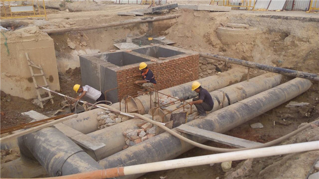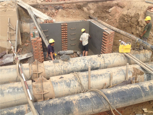華山西路路口處熱力放水閥檢查井砌筑,固支鋼筋綁扎,模板支設,下一步工序進(jìn)行砼澆筑