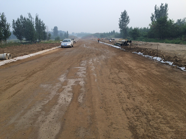 本工程于2016年5月開(kāi)工,本月主要進(jìn)行過(guò)路管安裝、基層水穩攤鋪和雨水口砌筑施工。